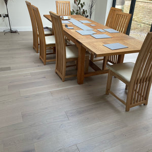 Ashton and Rose Gillow engineered wood flooring, a masterpiece crafted to elevate your living space with a serene and ethereal beauty. This flooring features a muted, silvery-grey hue that gives a sense of serenity and refinement.
