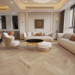 Ashton & Rose Fornby Chevron flooring, a striking choice for homeowners seeking a bold and dynamic look. Featuring an eye-catching 45º chevron pattern, this flooring design adds movement and a modern touch to any interior. The planks undergo a meticulous brushed process, enhancing the texture and highlighting the natural grain of the wood, creating a beautifully tactile finish that feels as good as it looks.